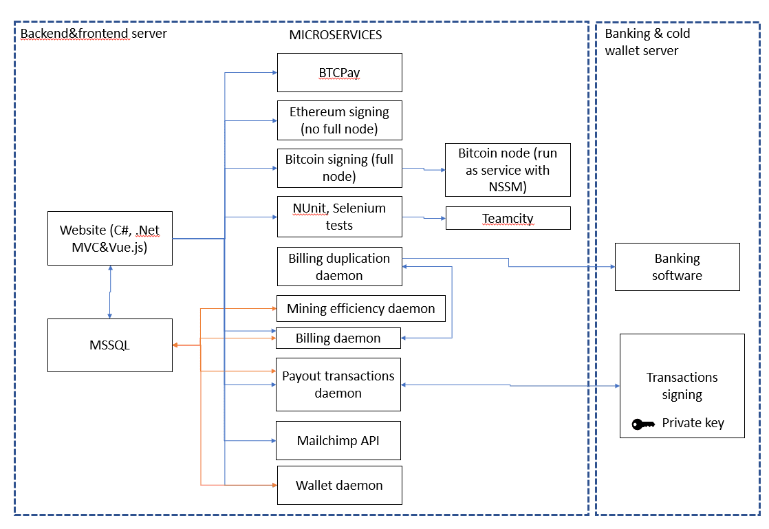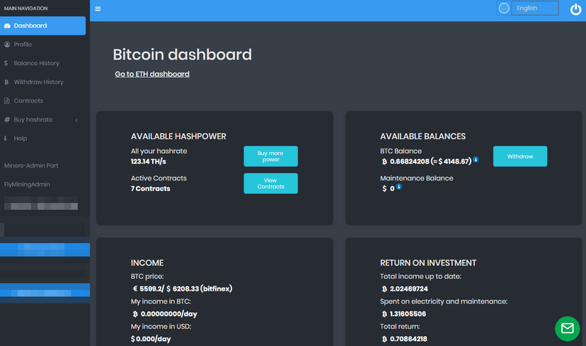 We have our own dashboard that shows effectivity of mining and maintenance staff. The mining information is used for the cloud mining service, to calculate the profit of each investor. All the payments, payouts are calculated using the real banking software (our team had to learn accounting to be able to implement certain types of transactions).