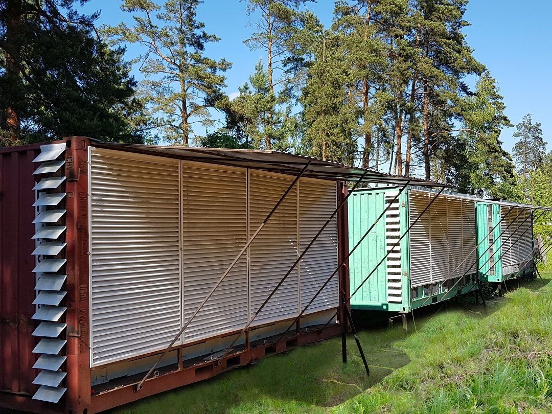 We took cargo containers and removed sidewalls to have great ventilation capability. Inside we installed commutators with a mobile internet adapter, which allows to fully isolate the equipment from people around the container, plus making the container mobile – the only connection is a power cable.