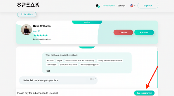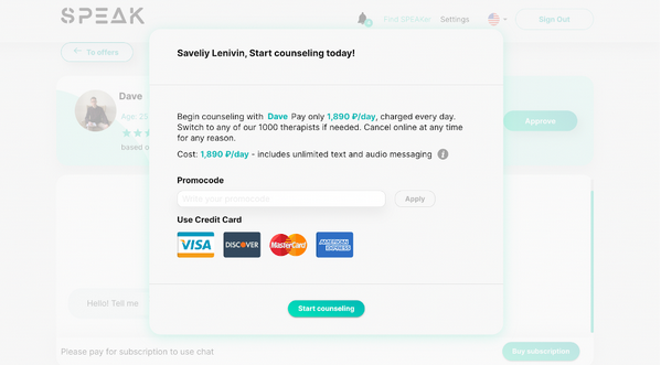 And then, once the client chooses a particular psychologist, he can start chatting him up directly.