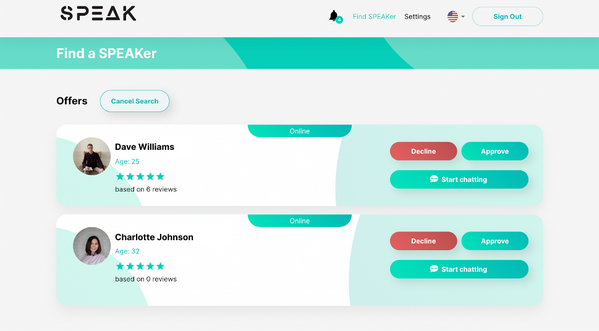 And when the time runs out or when a psychologist responds, a list of potential psychologists that the customer could contact right away is displayed.