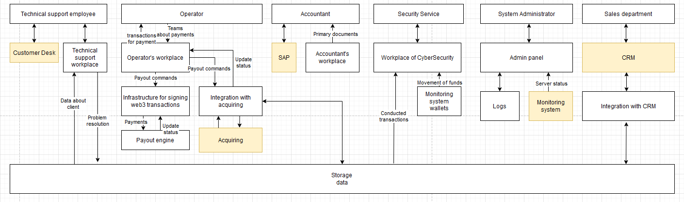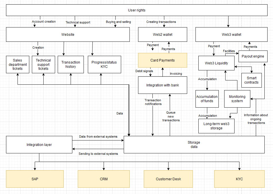 Development of a stable coin, and a platform where users can register, undergo KYC, buy a stable coin for fiat or crypto, deposit/withdraw it from the platform, as well as sell on the platform for fiat and withdraw fiat.
